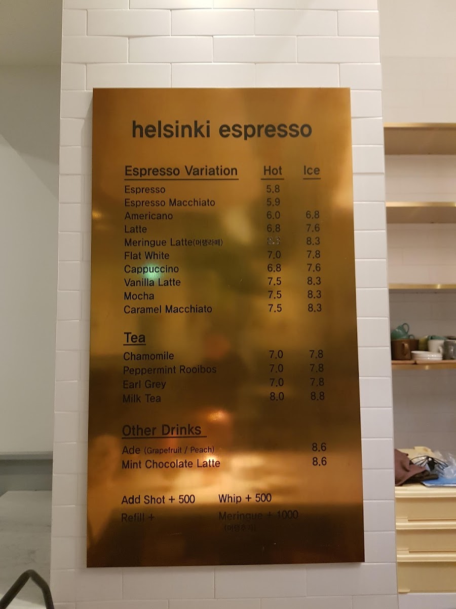 Helsinki Espresso Bar Menu